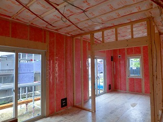 鎌田工務店では、1階の天井にも、断熱材を入れてます。