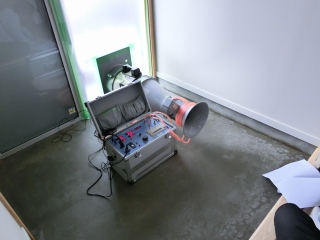 家を密閉した状態で専用の強力なファンで屋内の空気を外に出します。