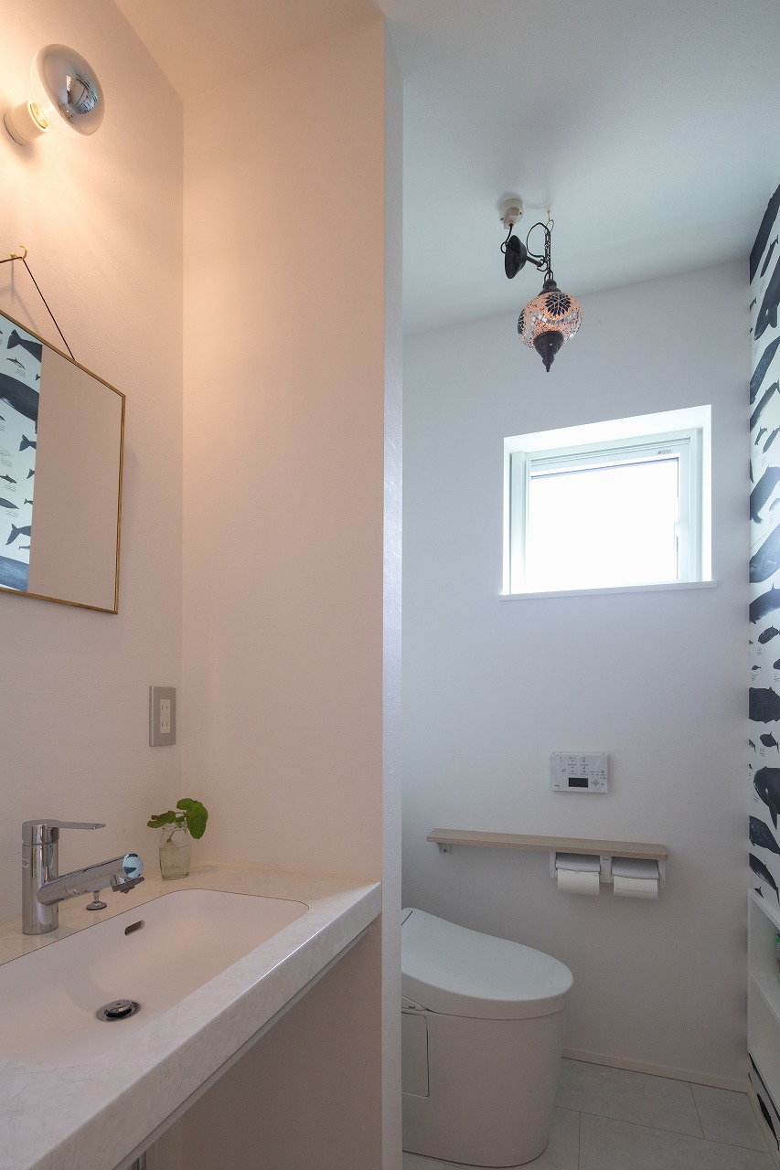 限られたスペースを最大限に活用しながら設計した、二階のサニタリースペース。