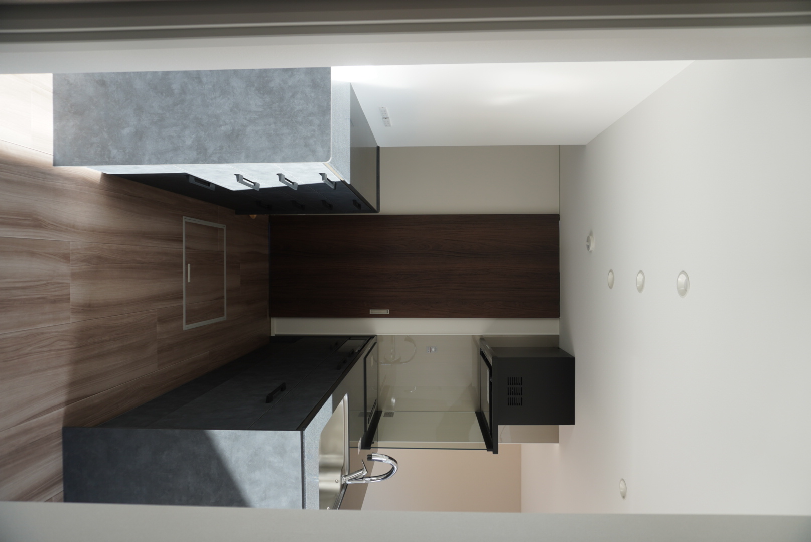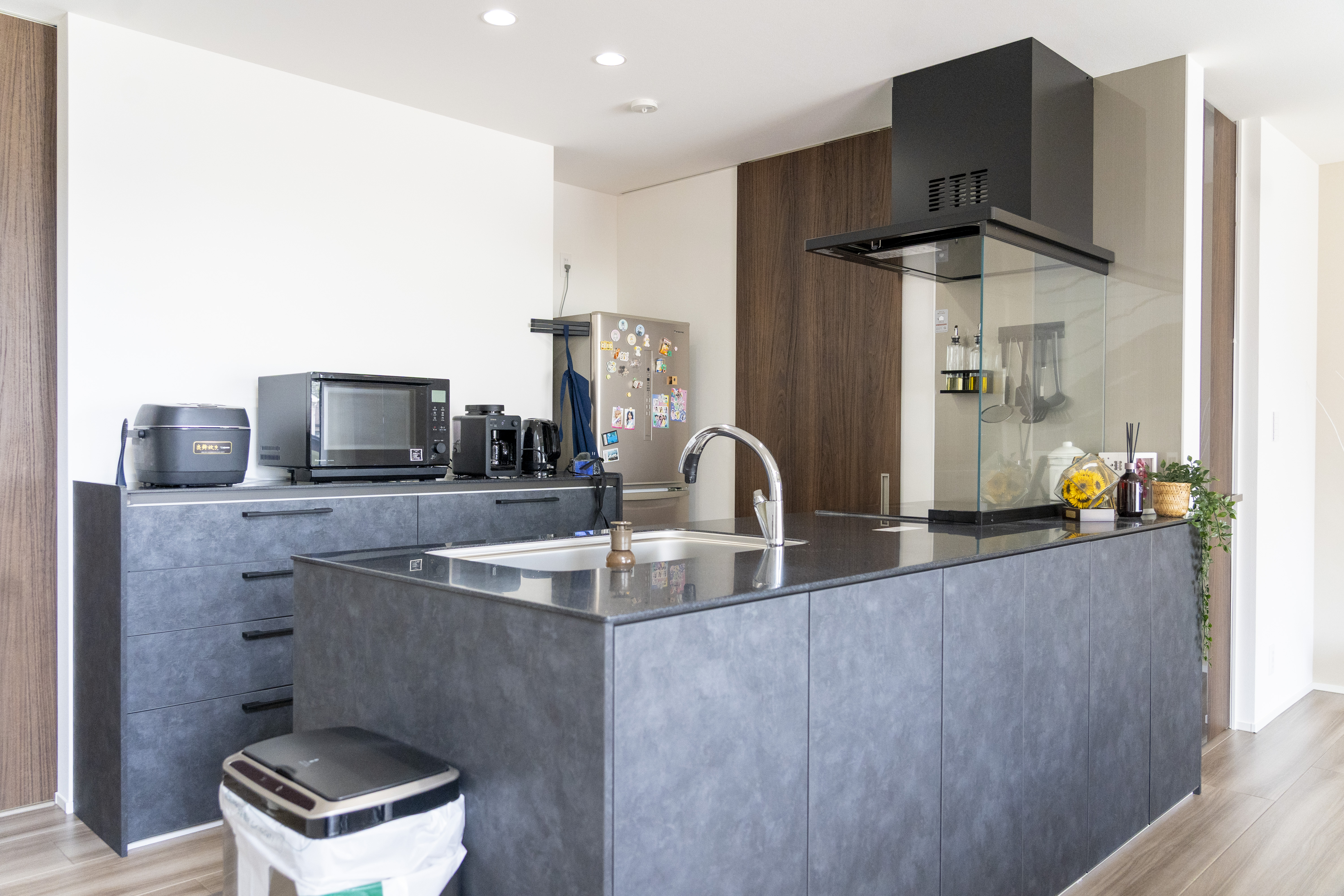 グレーの質感が美しいフラットキッチン。