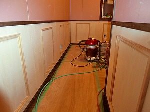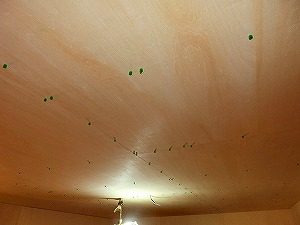 塗装の後、クロス屋さんが下地ボードの継ぎ目などのパテ処理を行っています。