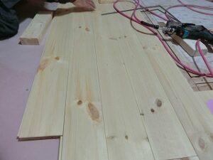 T様邸は一階床材にサクラ材、二階の床材にパイン材の無垢フロアーを採用しています。