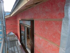 仙台市宮城野区K様邸は造作工事が進んでいます。瑕疵保険の躯体検査も完了して屋根工事や完了し樹脂サッシも付いたので雨に濡れる心配もなく成りました。