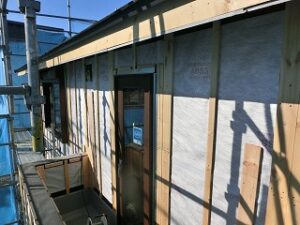 外部では外壁サイディングの工事もスタートしました。外壁のサイディングはイメージパースで決めて