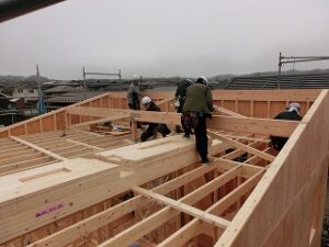今年はS様邸の建て方が完了した所で職人さんたちは仕事納めでした。お客様、スタッフ、各協力業者様、メーカー担当者様、本当にお世話になりました。感謝です。今年もみなさまのおかげを持ちまして無事終えることが出来ます。この場をお借りして心より御礼申し上げるとともに来年も引き続きあたたかなご支援をいただければ幸いです。