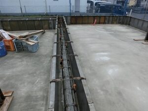 立ち上がりのコンクリートを施工してこの状態で数日間はコンクリートの乾かす期間の養生を行いコンクリートが固まってから型枠を外します