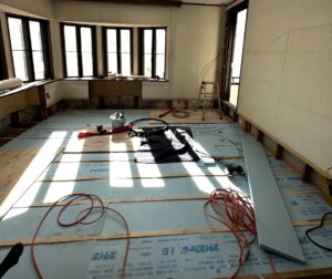 床を全て撤去し、下地及び床断熱材を新たに施工し、足元の冷えを軽減しています。