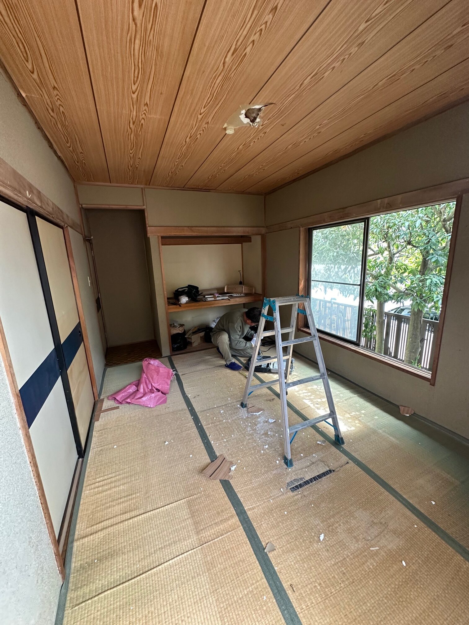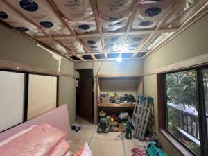 さらに天井も解体し、断熱材を新たに充填いたしました。