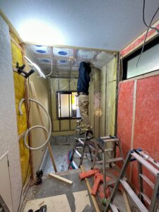 今回の工事では、ユニットバス交換、洗面化粧台交換、壁・天井の断熱材を新たに充填、気密施工、内装全面リニューアルをさせて頂きました。