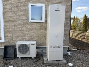 電気温水器からエコキュート460Lタイプへ交換工事、あわせて蓄熱暖房機の撤去工事を行いました。