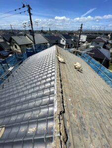 既存の瓦屋根は、棟の劣化や下地の傷みが見られ、今後の雨漏りリスクや建物への負担が懸念される状態でした。